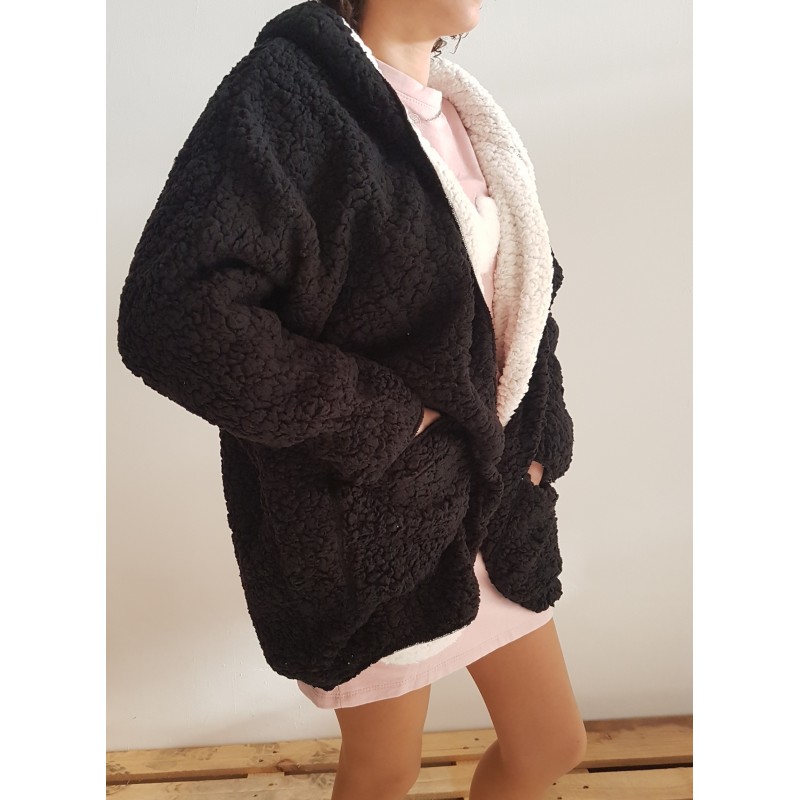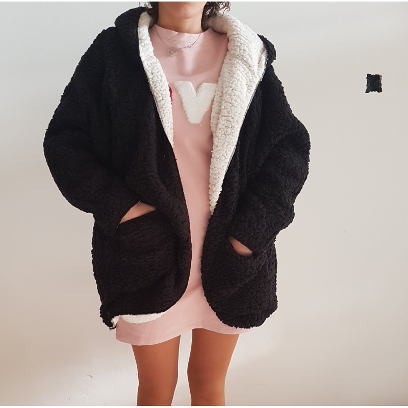 Abrigo borreguito negro/blanco